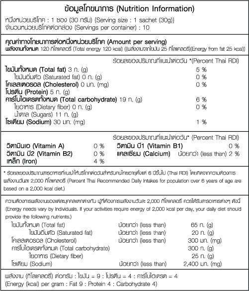 ขนาดบรรจุ : 300 กรัม (30 กรัม x 10 ซอง)